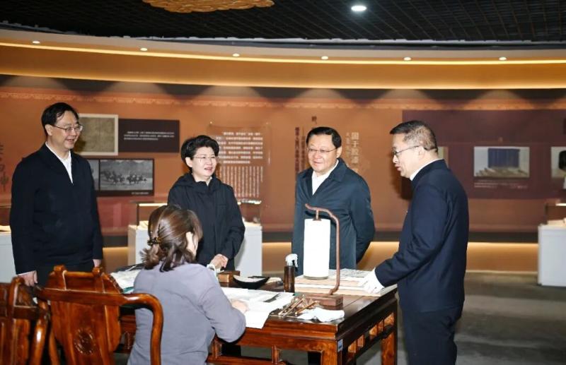 4月20日,自治區(qū)黨委書記、人大常委會(huì)主任王偉中走進(jìn)內(nèi)蒙古圖書館,詳細(xì)察看鑄牢中華民族共同體意識(shí)館藏古籍展覽情況。草原云·內(nèi)蒙古新聞網(wǎng)記者 馬建兵 攝