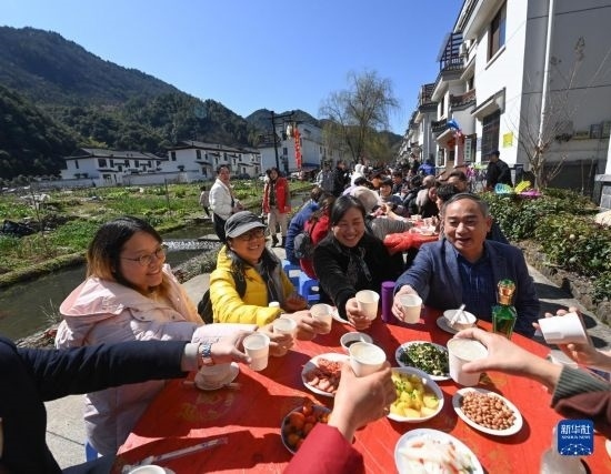 當(dāng)日,上千名游客來到浙江省建德市蓮花鎮(zhèn)戴家新村民宿一條街,參加鄉(xiāng)村特色百家宴,感受新農(nóng)村“舌尖上的幸?!?。本次鄉(xiāng)村百家宴也標(biāo)志著2023建德市蓮花鎮(zhèn)鄉(xiāng)村民俗旅游文化節(jié)正式開啟。