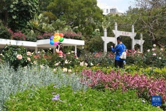 3月8日,游客在深圳人民公園花展現(xiàn)場拍攝花朵。
