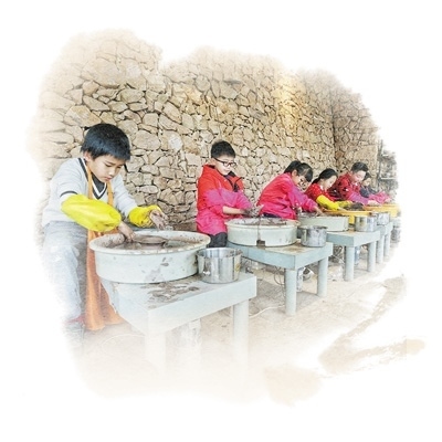 老劉則在傳習室里,一邊和著手中的陶土,一邊向孩子們講述陶藝的悠久歷史……
