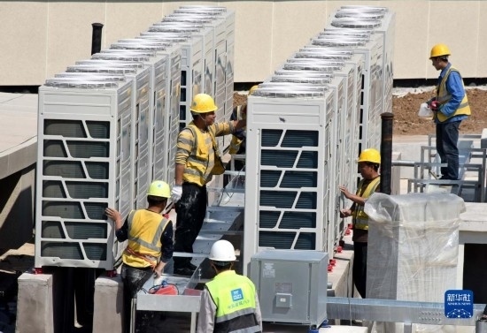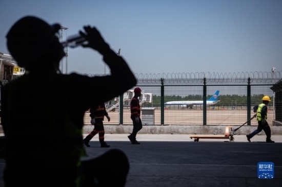 5月1日,中建八局的施工人員在長沙機場改擴建工程T3航站樓工程項目現(xiàn)場作業(yè)。