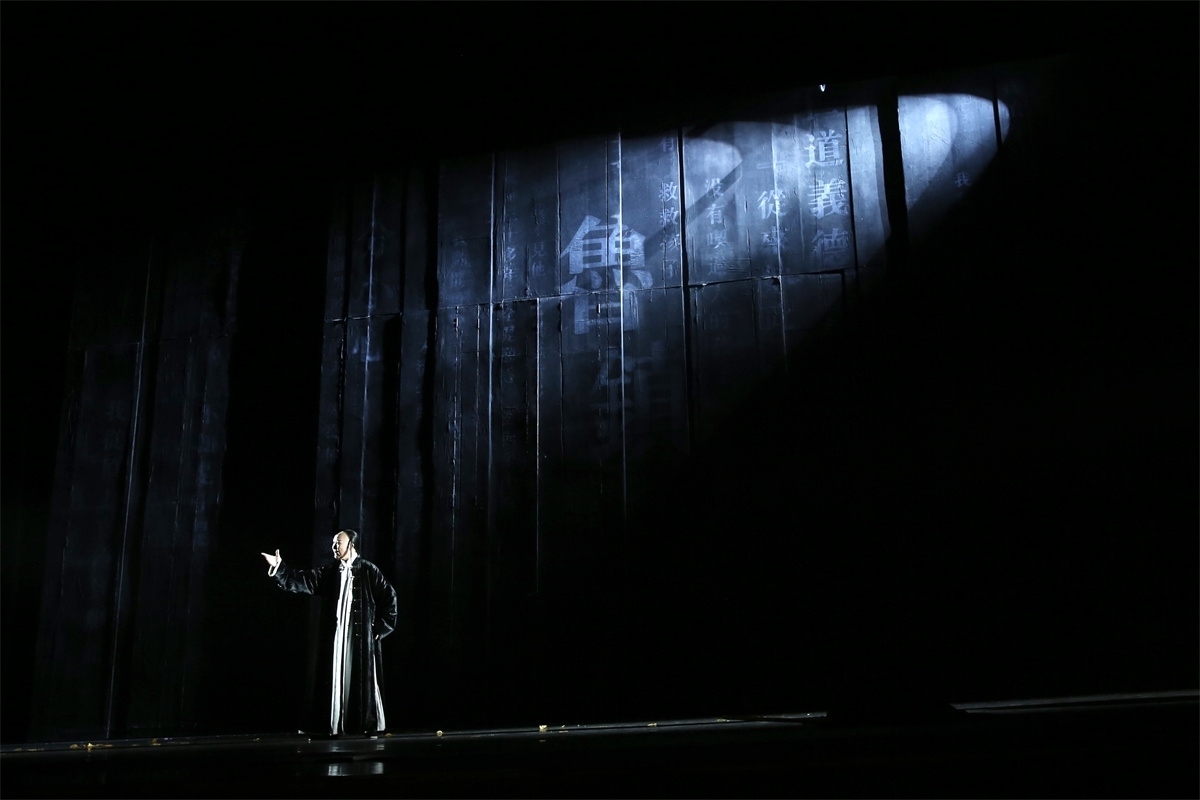 人民網(wǎng)北京5月6日電 (記者劉微)當(dāng)魯迅的《狂人日記》《祝?!贰犊滓壹骸返茸髌窛饪s在一起,熟悉的祥林嫂、阿Q等人物在一個(gè)全新的藝術(shù)空間進(jìn)行時(shí)空對話是怎樣的場景?5月5日,由河南省曲劇藝術(shù)保護(hù)傳承中心創(chuàng)排的大型原創(chuàng)曲劇《魯鎮(zhèn)》在北京國家大劇院上演。