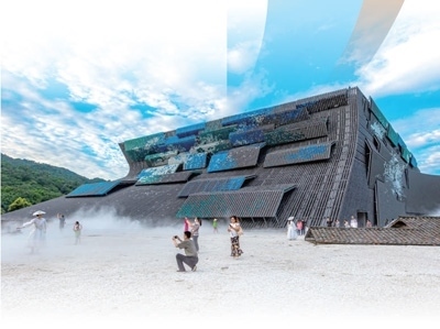 “只有峨眉山”演藝項目的室外劇場,游客正在參觀打卡。 袁學方攝(人民視覺)