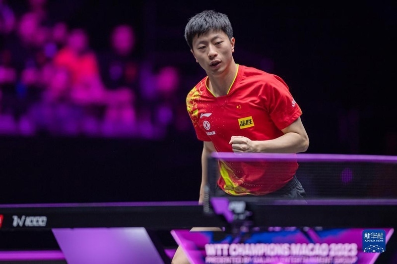 2023年4月22日,馬龍?jiān)诒荣愔?。?dāng)日,在澳門塔石體育館舉行的2023世界乒乓球職業(yè)大聯(lián)盟(WTT)澳門冠軍賽男子單打半決賽中,中國選手馬龍以4比1戰(zhàn)勝法國選手艾利克斯·勒布倫,晉級(jí)決賽。新華社記者 張金加攝