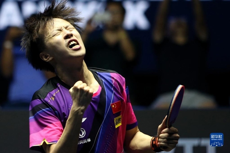 2023年4月29日,林高遠(yuǎn)在比賽后慶祝勝利。當(dāng)日,在泰國曼谷舉行的2023年世界乒乓球職業(yè)大聯(lián)盟(WTT)球星挑戰(zhàn)賽曼谷站男單決賽中,中國選手林高遠(yuǎn)以4比3戰(zhàn)勝韓國選手張禹珍,奪得冠軍。新華社記者王騰攝