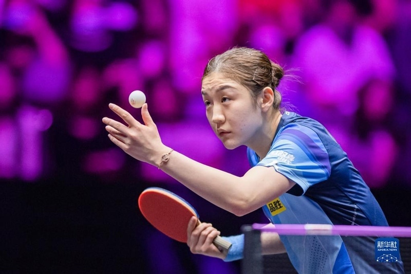 2023年4月11日,陳幸同在比賽中回球。當(dāng)日,在河南新鄉(xiāng)舉行的世界乒乓球職業(yè)大聯(lián)盟(WTT)新鄉(xiāng)冠軍賽女單首輪比賽中,中國選手陳幸同以3比0戰(zhàn)勝日本選手木原美悠,晉級(jí)十六強(qiáng)。新華社記者 郝源攝