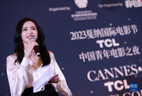 5月19日,在法國戛納,演員姚晨在“中國青年電影之夜”活動上致辭。