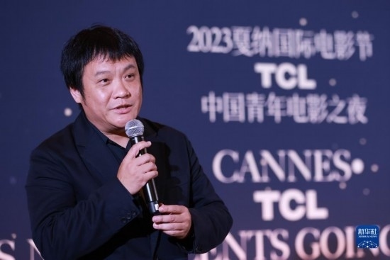 5月19日,在法國戛納,中國青年電影全球推廣計劃推廣大使、導(dǎo)演寧浩在“中國青年電影之夜”活動上致辭。