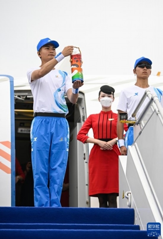作為大運(yùn)會(huì)官方合作伙伴,四川航空承擔(dān)此次火炬?zhèn)鬟f火種航空運(yùn)輸保障任務(wù)。當(dāng)日,“大運(yùn)號(hào)”主題彩繪飛機(jī)執(zhí)行此次任務(wù),并由“中國民航英雄機(jī)長”劉傳健負(fù)責(zé)執(zhí)飛本次航班。在火種護(hù)衛(wèi)隊(duì)21名隊(duì)員的護(hù)送下,火種飛赴火炬?zhèn)鬟f首站城市——北京。從6月10日到7月28日,大運(yùn)火炬將承載著大運(yùn)精神,奏響“奮斗青春 放飛夢想”的成都大運(yùn)會(huì)序章。
