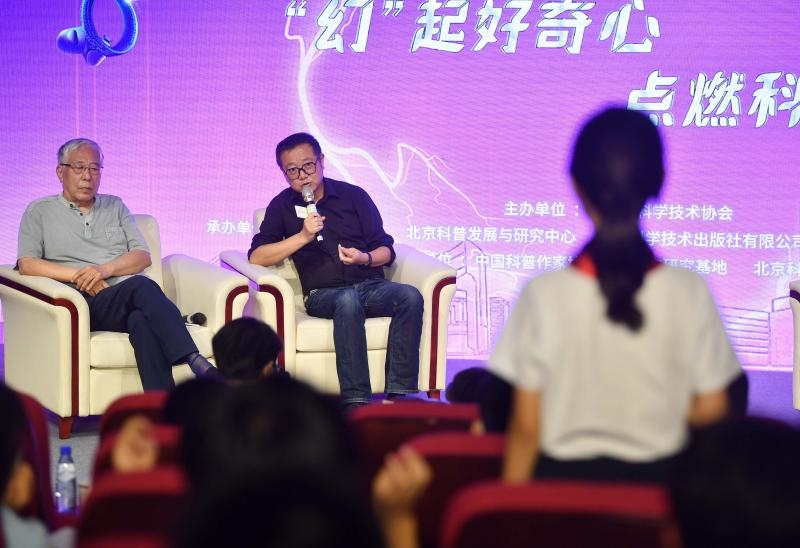 科幻有預(yù)言功能嗎?《流浪地球》中“冬眠”那樣的科幻技術(shù)會影響人類的發(fā)展方向嗎?優(yōu)秀科幻作品如何帶給讀者強(qiáng)烈的代入感?昨天,一場科幻大師與中學(xué)生之間的對話在中國科幻大會上演。作為中國科幻大會的重要組成部分,“首都青少年科幻嘉年華”在首鋼園和北京科學(xué)中心舉辦,其中的“大師對話”環(huán)節(jié)邀請著名科幻作家劉慈欣、王晉康,與第42屆北京青少年科技創(chuàng)新大賽科幻畫獲獎?wù)呒鞍儆嗝袑W(xué)生進(jìn)行了科幻對話。