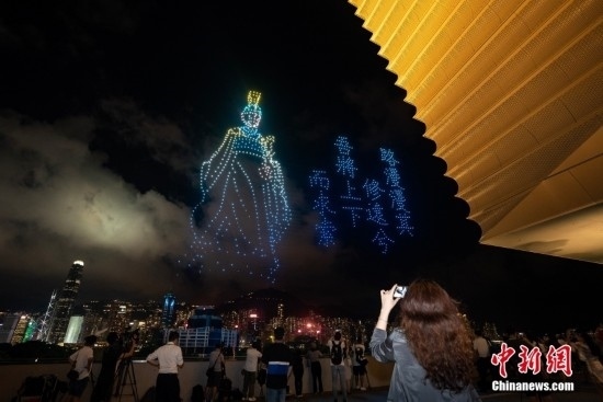 6月22日晚間,“紫荊花之夜”無人機(jī)燈光創(chuàng)意秀在香港故宮文化博物館畔的海面上空舉行,2000架無人機(jī)演繹多個(gè)與“端午節(jié)”相關(guān)的圖案,點(diǎn)亮香港夜空。