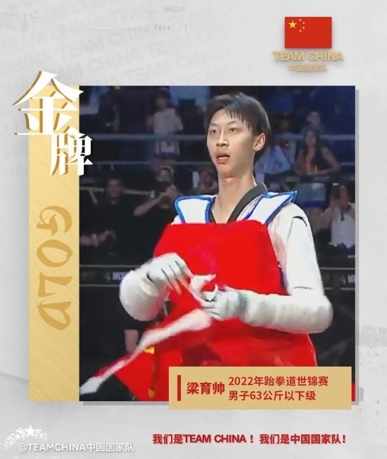 2022年,梁育帥在瓜達(dá)拉哈拉世錦賽中奪得一枚金牌(圖片來(lái)源TEAMCHINA中國(guó)國(guó)家隊(duì)微博)