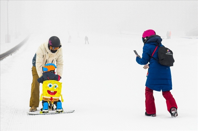 在新疆白云國際滑雪場,許秀娟(右)在給愛人和兒子拍照。哈爾濱人許秀娟曾是專業(yè)運(yùn)動(dòng)員,代表國家隊(duì)拿過國際大賽獎(jiǎng)牌。退役后她來到新疆,在這里她和愛人相識(shí),一起開辦培訓(xùn)機(jī)構(gòu),面向青少年推廣冰雪運(yùn)動(dòng)。