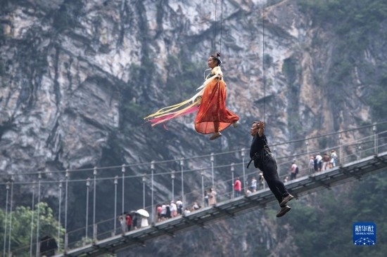 8月20日,游客在湖北省恩施州建始縣地心谷景區(qū)游玩(無人機照片)。