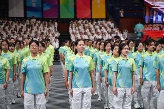 8月24日,杭州亞運(yùn)會(huì)、亞殘運(yùn)會(huì)賽會(huì)志愿者出征儀式在浙江大學(xué)紫金港校區(qū)體育館舉行。1800名賽會(huì)志愿者代表在儀式現(xiàn)場向全世界發(fā)出邀約——“來吧,朋友!”
