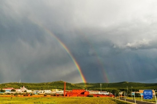 這是8月31日拍攝的阿爾山市的彩虹(無人機(jī)照片)。