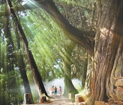漫步在翠云廊蜿蜒的古道石板路上,松柏木的清香縈繞鼻尖,縷縷陽光穿透樹蔭,側(cè)耳傾聽風(fēng)拂樹干的聲音——一步一行中,收獲一段愜意時光。