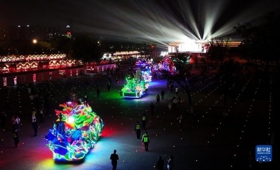 唐大明宮是盛唐時(shí)期享有盛名的宮殿群,有著“千宮之宮”的美譽(yù)。國(guó)慶期間,古風(fēng)演藝、華服大秀、曲藝匯演、彩車(chē)巡游等一系列活動(dòng)在大明宮國(guó)家遺址公園持續(xù)上演。夜幕之下,盛唐文化與現(xiàn)代時(shí)尚在此相映生輝,吸引市民游客前來(lái)參觀(guān)打卡。新華社記者 劉瀟 攝
