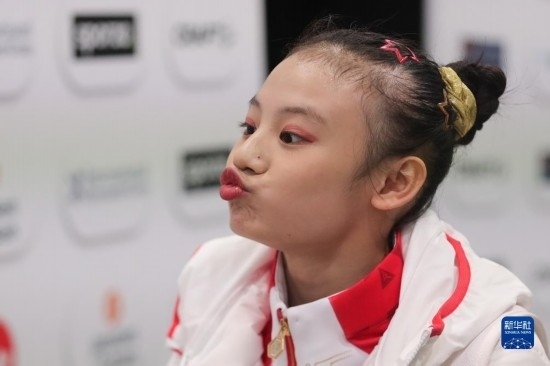 10月2日,中國(guó)選手邱祺緣在平衡木比賽后。新華社記者 鄭煥松 攝