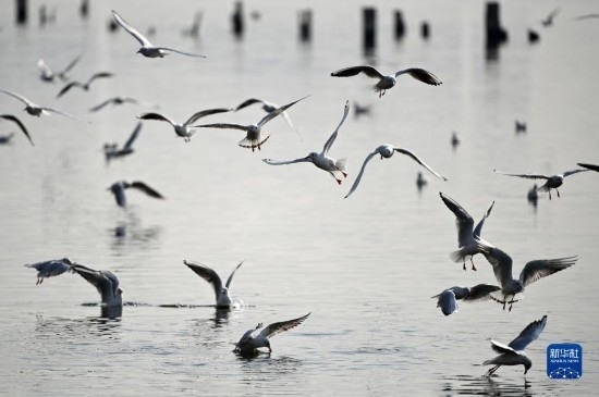初冬時(shí)節(jié),天津市迎來(lái)候鳥(niǎo)遷徙高峰期,不少海鷗從寒冷的西伯利亞遷徙到濱海新區(qū)老碼頭附近的海河岸邊越冬,吸引游人前往觀(guān)賞。