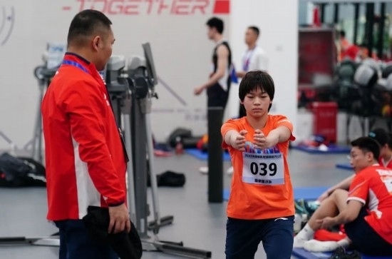 2023年12月29日,2023年國(guó)家隊(duì)冬訓(xùn)體能大比武在國(guó)家體育總局訓(xùn)練局舉行,來自射擊、舉重、田徑、游泳、跳水、花樣游泳、體操、蹦床、乒乓球、羽毛球等10支國(guó)家隊(duì)的150名運(yùn)動(dòng)員參加活動(dòng)。圖為國(guó)家跳水隊(duì)運(yùn)動(dòng)員全紅嬋在測(cè)試前熱身。