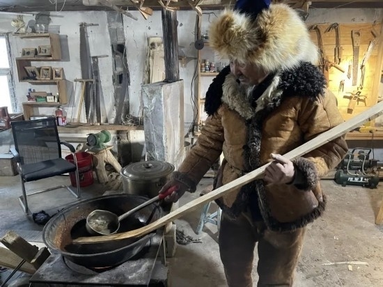 胡安什別克·斯蘭別克不僅自己堅持傳承,還帶了幾個年輕學(xué)徒。幾年前,他在短視頻平臺上發(fā)布視頻,介紹毛皮滑雪板的制作過程。為了方便游客攜帶,他還開發(fā)出巴掌大小的迷你滑雪板,游客可以自己體驗制作過程,很受歡迎。