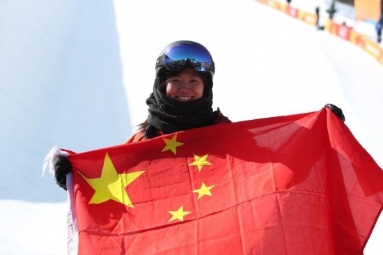 2018年2月13日,中國選手劉佳宇在比賽后慶祝。當(dāng)日,在2018年平昌冬奧會單板滑雪女子U型場地技巧決賽中,劉佳宇獲得銀牌。新華社記者費(fèi)茂華攝