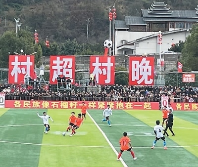 “村超”是指由當(dāng)?shù)厝罕娮詣?chuàng)舉辦的“貴州榕江(三寶侗寨)和美鄉(xiāng)村足球超級(jí)聯(lián)賽”。2023年初,文化和旅游部下發(fā)文件,鼓勵(lì)各地開展“四季村晚”活動(dòng)。