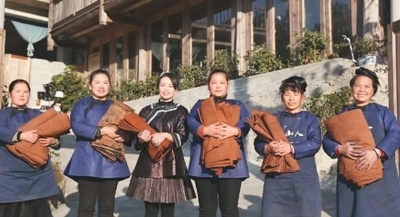 非物質(zhì)文化遺產(chǎn)傳承、文化產(chǎn)品開發(fā),使鄉(xiāng)村文化在鄉(xiāng)村振興建設(shè)中發(fā)揮更大作用,也讓鄉(xiāng)村文化遺產(chǎn)更好地留存下來、傳承下去。非遺傳承人楊成蘭(左三)與織娘一起展示手作侗布。受訪者供圖本文圖片除署名外均由朱玉芳攝
