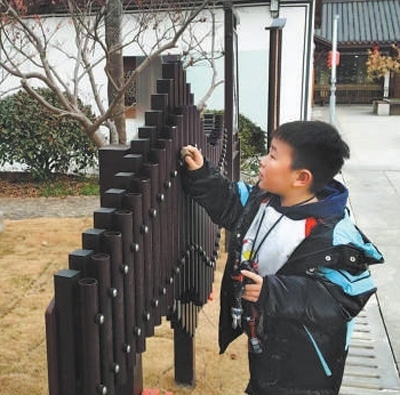 杭州市中泰竹笛展示館內(nèi),小朋友在體驗(yàn)竹笛文化。本報(bào)記者 王 玨攝