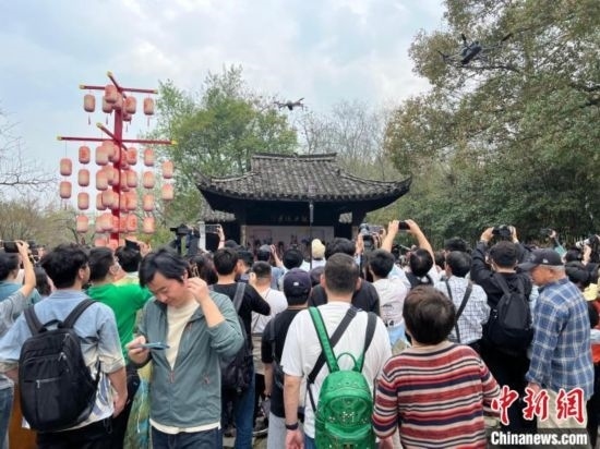 當(dāng)天,伴隨著美妙的音樂(lè),“十二花神”乘坐氦氣球沐風(fēng)而上“天女散花”,繽紛的花瓣隨風(fēng)飄灑,將象征著百花齊放、春滿人間的美好祝愿灑向人間。隨后,“十二花神”登上宋韻花船,沿著西溪濕地蜿蜒的河道緩緩巡游,唯美浪漫的畫面為游客獻(xiàn)上了一場(chǎng)視覺(jué)盛宴。