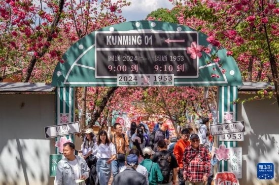 近日,云南昆明圓通山公園的櫻花進(jìn)入盛花期,吸引眾多市民和游客前來(lái)觀花賞景,樂(lè)享春日時(shí)光。