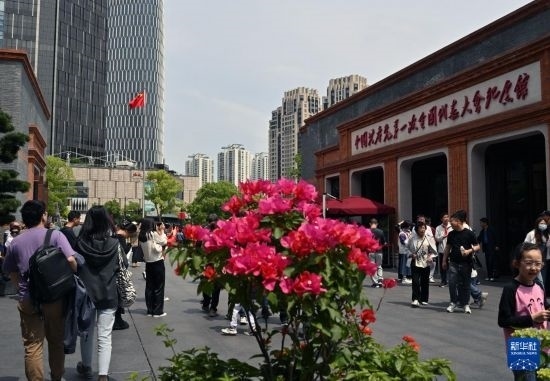 5月3日,游客在中共一大會址前參觀。