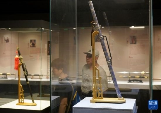 5月7日,觀眾在浙江省博物館孤山館區(qū)觀看龍泉寶劍精品展。