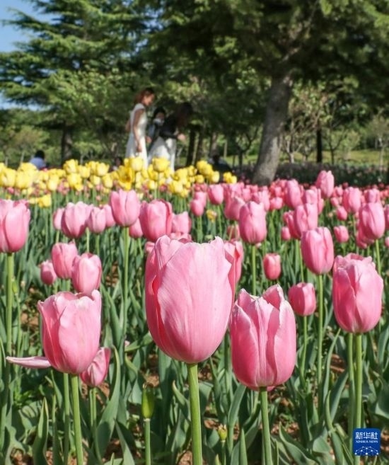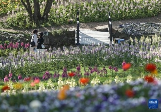5月11日,游客在大連英歌石植物園游覽。