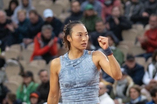 6月1日,鄭欽文在2024法國網(wǎng)球公開賽女子單打第三輪比賽中慶祝得分。新華社記者 孟鼎博 攝