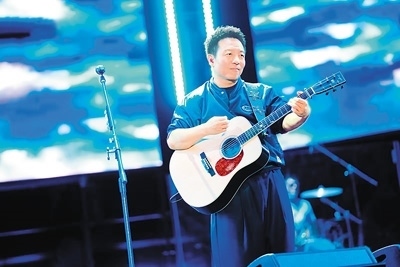 中國(guó)音樂人許巍在音樂節(jié)表演