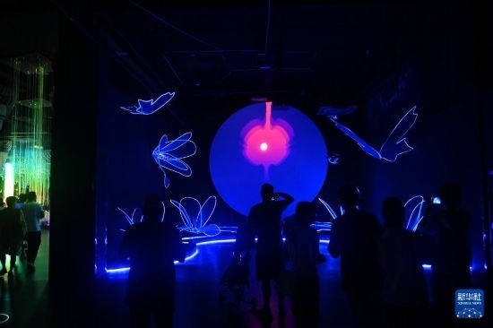 7月5日,游客在杭州宋城景區(qū)觀(guān)看光影互動(dòng)。