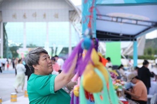 施滿(mǎn)義在攤位上向顧客介紹著刺繡、荷包、胸針等商品。作為自治區(qū)級(jí)非遺傳承人,施滿(mǎn)義非常明白客流量和曝光量對(duì)于非遺文創(chuàng)產(chǎn)品的重要性?!斑@里客流量大,像這個(gè)胸針,今天下午剛擺上沒(méi)多久已經(jīng)賣(mài)出180多個(gè)了。”