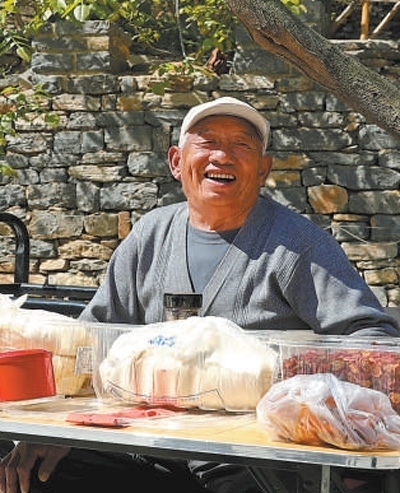 發(fā)展旅游,村民跟著富了口袋。小巷里,專門開辟了“山貨一條街”,拓寬農(nóng)產(chǎn)品銷售渠道。清晨,畢于漢就常到山上挖些中藥材、野菜,擺上地攤,供游客挑選。