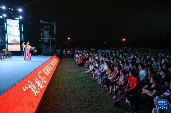 10月6日在海口市萬綠園拍攝的“瓊韻薈”瓊劇精品藝術(shù)進社區(qū)展演現(xiàn)場。
