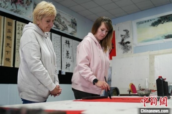 圖為外國(guó)友人進(jìn)行書(shū)法創(chuàng)作。韓慧峰 攝