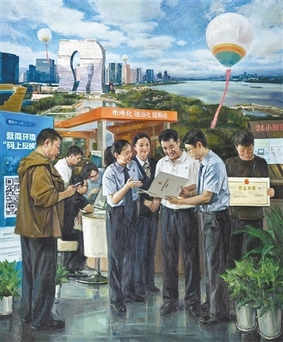 油畫《浙江省三個“一號工程”——改革攻堅》,浙江省油畫院集體創(chuàng)作。