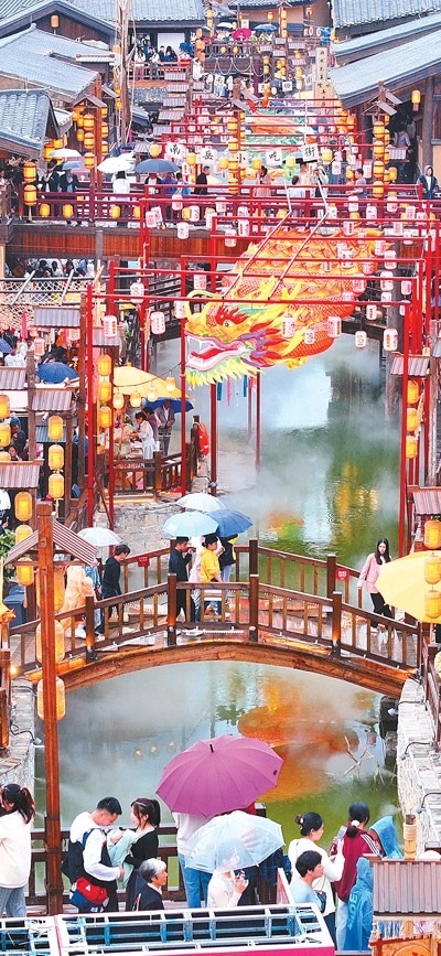 龍門浩老街上,幾名外地游客沿著青石臺(tái)階漫步至老街最高點(diǎn)——攬?jiān)屡_(tái),遠(yuǎn)眺渝中半島。這條位于重慶市南岸區(qū)南濱路中段的老街,面朝長(zhǎng)江,背依南山,開埠文化、巴渝文化等文化底蘊(yùn)深厚。近年來(lái),經(jīng)過(guò)保護(hù)與修繕,這里不僅恢復(fù)了歷史風(fēng)貌,還增添了現(xiàn)代時(shí)尚氣息。古色古香的街道兩旁,新潮的商鋪、餐館和咖啡館為市民游客休閑購(gòu)物提供便利和全新體驗(yàn)?!案惺軙r(shí)光交錯(cuò)的美妙”,成為這里的一大魅力。數(shù)據(jù)顯示,自發(fā)展全域旅游以來(lái),龍門浩老街所在的龍門浩街道已接待游客近4000萬(wàn)人次,實(shí)現(xiàn)旅游收入276.8億元,龍門浩老街還成功創(chuàng)建第二批國(guó)家級(jí)夜間文旅消費(fèi)聚集區(qū)。