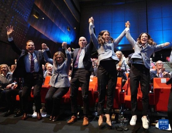 這是2024年7月24日,在巴黎進(jìn)行的國際奧委會第142次全會上,美國鹽湖城代表團(tuán)成員慶祝獲得2034年冬奧會舉辦權(quán)。新華社記者 孫非 攝