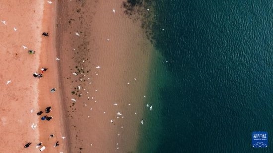 1月12日,游客在撫仙湖邊游玩(無(wú)人機(jī)照片)。