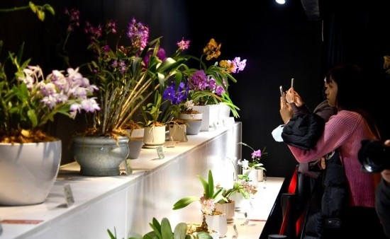 2月5日,市民在觀賞國家植物園展出的蘭花。新華社記者 李欣 攝