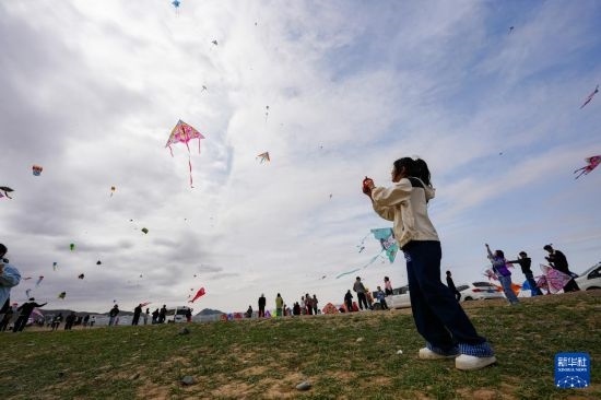 4月19日,人們?cè)谛陆疄豸斈君R市水磨溝區(qū)風(fēng)箏嘉年華活動(dòng)現(xiàn)場(chǎng)放風(fēng)箏。