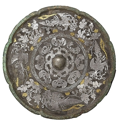 在金銀交相輝映下,這面銅鏡時(shí)至今日依然流光溢彩,其奧秘就在于“金銀平脫”工藝。即用金銀薄片裁成紋樣,粘貼于銅器漆面上,周邊再用漆涂滿(mǎn),經(jīng)研磨拋光再鏨花,形成富麗堂皇、精麗雅致的藝術(shù)效果。它從最早出現(xiàn)于商代的金銀箔貼花技術(shù)演變而來(lái),后經(jīng)歷了戰(zhàn)國(guó)、漢代較長(zhǎng)時(shí)期的發(fā)展。到了唐代,工匠將“金銀平脫”創(chuàng)造性地運(yùn)用在銅鏡之上。