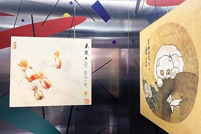 藝術(shù)如何真正進(jìn)入社區(qū)空間,成為居民生活的一部分?“藝術(shù)電梯”計劃給出了一種城市微更新的可能路徑。2023年,社區(qū)樞紐站與中華藝術(shù)宮(上海美術(shù)館)、上海大學(xué)上海美術(shù)學(xué)院聯(lián)合發(fā)起了“藝術(shù)電梯”計劃。該計劃將中華藝術(shù)宮“歷史的星空:二十世紀(jì)前期海派繪畫研究展”中2件虛谷的作品《白貓》《春波魚戲圖》融入小區(qū)電梯。